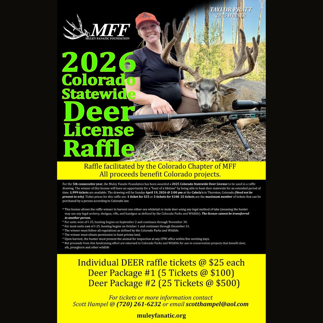 "Purchasing raffle tickets for the Colorado Statewide Deer License via our website is not available due to Colorado Secretary of State compliance rules.